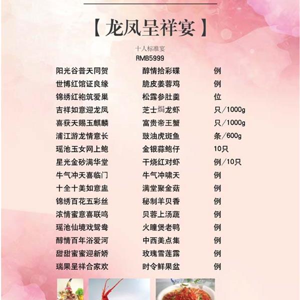 喜结良缘宴(10位)龙凤呈祥宴 标准售价:4999元/桌